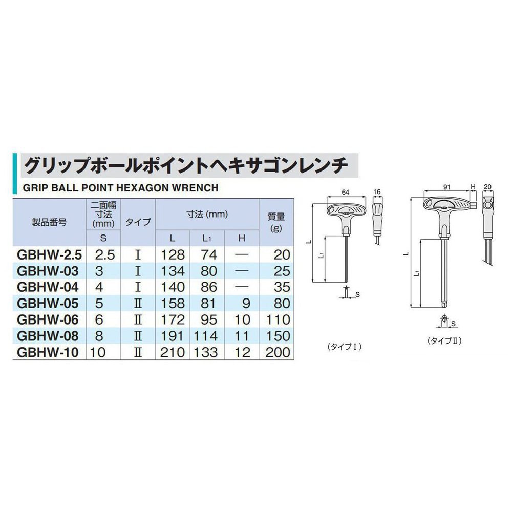 ● For a size of 5 to 10 mm, a hexagonal bar of the same size is arranged at the end of the grip.