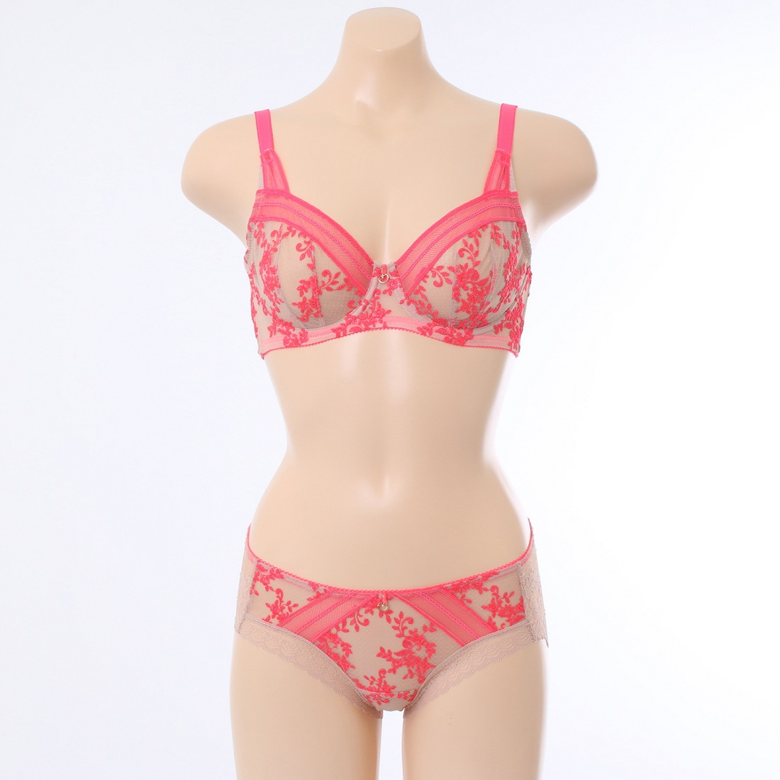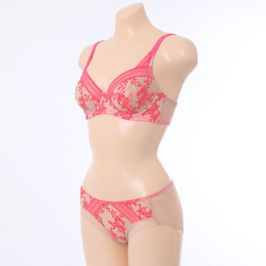모던한 소폭 리버 레이스를 매칭한 풀컵 홑겹 브라.