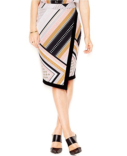 Bar III Women's Faux Wrap Scuba Envelope Pencil Skirt (Large, Golden Spruce Combo)