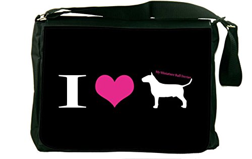 Studio : Rikki Knight LLC Publisher : Rikki Knight LLC Binding : Office Product Product Description Whether from home to the office, on a business trip or to school, the I Love My miniature Bull Terrier Dog laptop bag notebook bag messenger bag school bag keeps you comfortable and your cargo safe and sound - this bag features pockets on the outside below the flap for your cellphone, pens, iPod, notebook etc. And also a zippered compartment on the inside, with plenty of space to store your textbooks, folders, files, etc. And up to a 14 inch laptop (laptop sleeve sold separately) - the vibrant image on the front is professionally printed and will not fade or peel with time and this bag will surely be an eye catcher wherever you go with it. Disclaimer: all images are printed directly into the material - the Texture of the image will always be a flat surface. Any images that appears to be 3D, textured, or glittery are flat printed images. 0