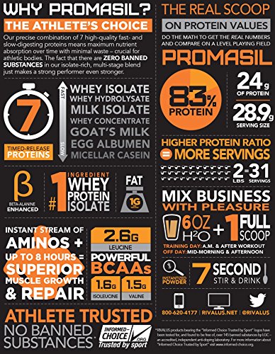 Proteins come in a variety of forms. Sources like whey are ideal around workouts when you want aminos - fast. Casein proteins are better between meals and before bed when slower delivery, over several hours, is preferred. Moderate-release proteins like egg and goat's milk are easily digested and contain all of the essential amino acids, which makes them great choices most other times. PROMASIL's elite blend combines fast, intermediate, and slower-digesting sources to deliver the best of all worlds: a single protein powder that is versatile enough for all day use. Whether you drink your shake in the morning, after workouts, or between meals, PROMASIL's multi-source blend provides broad-spectrum amino acid coverage in one convenient package.Feature