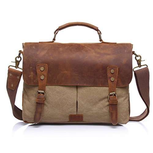 -. Binding : Personal Computers -. Brand : CRAZY ANTS -. Feature : Made from 100% premium canvas and bronze hardware,excellent top grain genuine and crazy-horse leather. / Approximately dimensions: 16 x 13.4 x 1.6 inches, hold up to 14" laptop, A4 Papers and Books,Phone etc.( Warm prompt: The weight of the maximum load is less than 7 kg) / Stylish and practical with durable top handle and adjustable shoulder strap for easy carrying. / Various pockets: 1 Main compartment + 2 Front pocket + 1 Zipper pocket + 2 Inner sidewall pockets(for your phone and your documents) / Fashion design, well sewn craftsmanship.Multiple pockets inside, great organization for business, travel and everyday use. -. Label : CRAZY ANTS -. Manufacturer : CRAZY ANTS -. MPN : US-095 -. PackageQuantity : 1 -. PartNumber : US-095 -. ProductGroup : PC Accessory -. ProductTypeName : CARRYING_CASE_OR_BAG -. Publisher : CRAZY ANTS -. Studio : CRAZY ANTS -. Title : Crazy Ants Vintage Canvas Leather Mens Messenger Bags 14 Inch Laptop Briefcase Shoulder Bag
