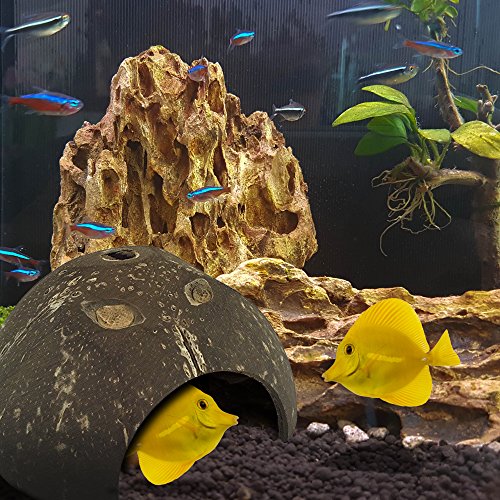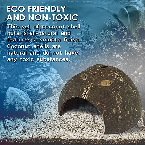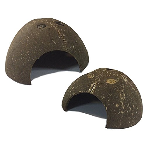 Set of 2 Coconut Shell Hut Natural Habitat Hideout for Spiders, Hermit Crabs, Reptiles, Hamsters, Fish