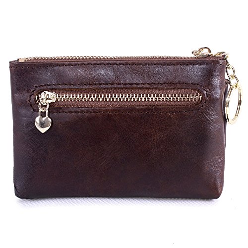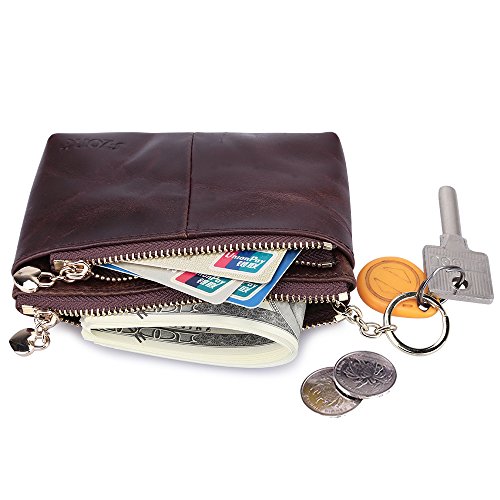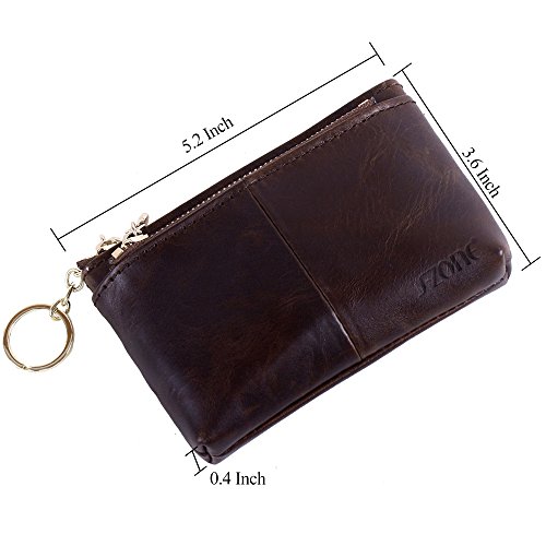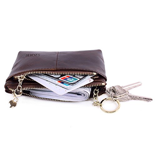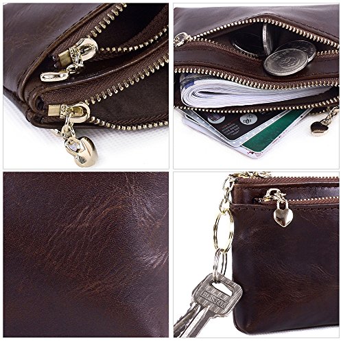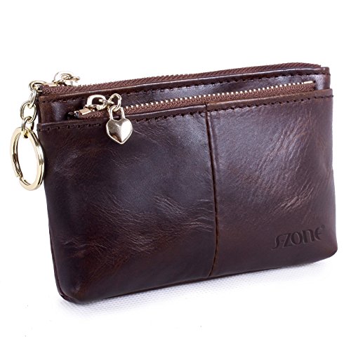 Binding : Apparel Product Description S-ZONE Women's Genuine Wax Leather Triple Zipper Mini Coin Purse Card Holder with Key Ring