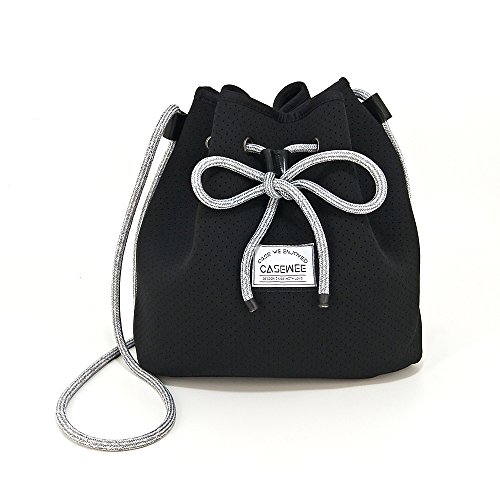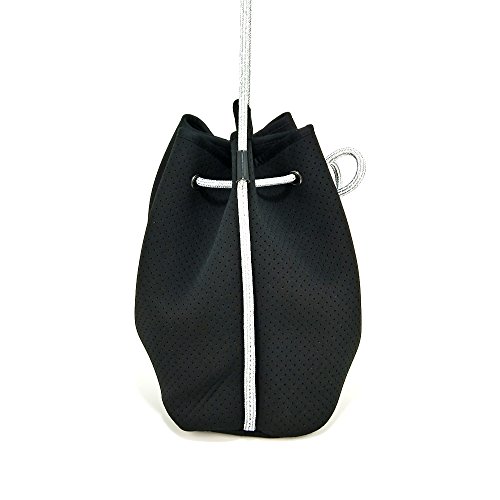 MATERIAL: 100% Neoprene construction; slight stretch,Stylish black neoprene with speckled Multicolor rope for easy closure.
