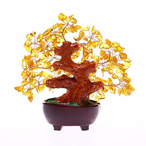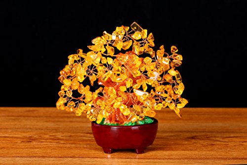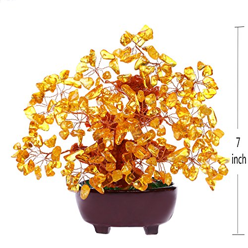 Feng Shui Natural Citrine Gem Stone Money Tree 7 Inch