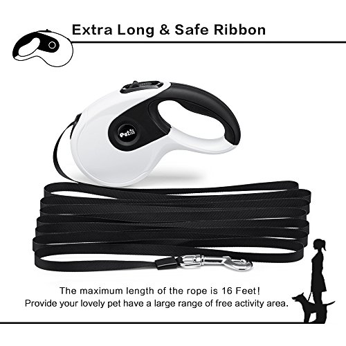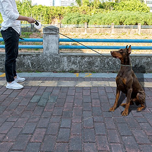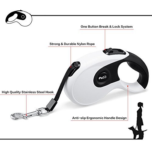 Enjoy Walking Your Lovely Puppies with Yimaler Easy to Use Heavy Duty Retractable Dog Leash in open area with ease. The Ideal Dog Leash for Dogs Lovers! ? ? Release Lock safety system - The brake and lock button on the top of the leash lets you adjust the length of the leash as you want. To stop the leash,press brake button with your thumb. It will keep locking as long as the button is pressed. Its reliable lock system enables you to retract of your dog instantly when needed. ? ? Tough Enough to Handle Dogs of All Sizes - The retractable dog leash can expand up to 16ft, strong and durable, made for daily use, with a strong spring for smoothly retracting dog leash. Perfect fits for fits for any sizes of dogs,smaller,medium,and energetic large dogs up to 110 lbs, giving you great control and also provide maximum freedom for your lovely friends. ? Specifications ※?Material: ABS plastic casing Anti-slip handle Stainless steel buckle Polyester Leash ※?Color: White Black ※ Maximum Tension: 110lbs ※ Adjustable Length: 16ft ※ Weight: 0.85pounds ? What's in the box? ? 1 x Retractable Dog Leash ? 1 x Dog Waste Dispenser ? 1 Roll of Wast Bags ? PLEASE NOTE 1.?Do not allow small children to use the dog leash. 2.?Fasten the leash hook onto the metal loop pf your pest collar before use. 3.?Do not use this leash on uncontrollable or disobedient dog's. 4. Never try to open the plastic casing, disassemble any other parts, the spring inside may cause unexpected injuries. 0 |