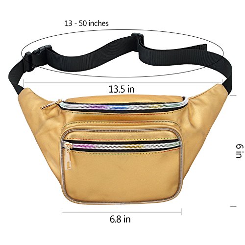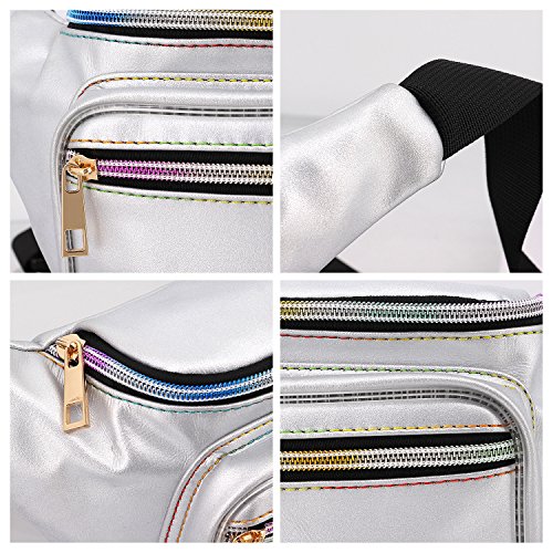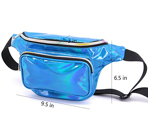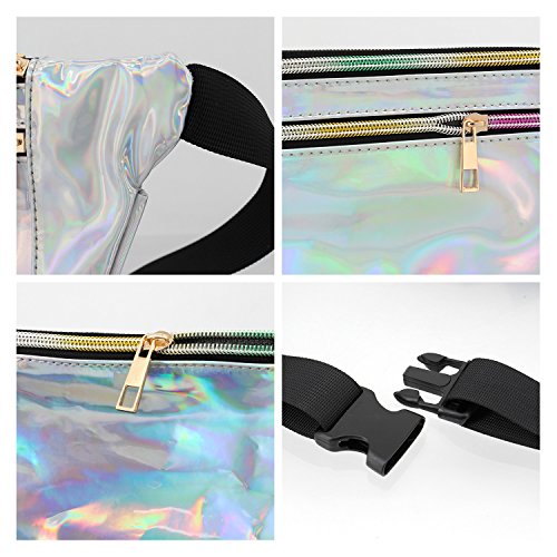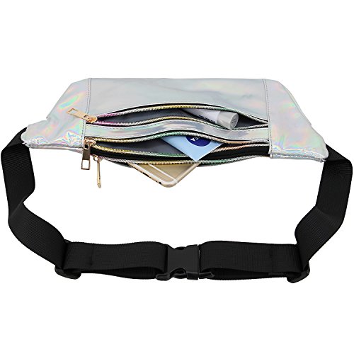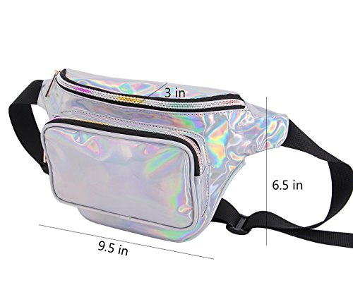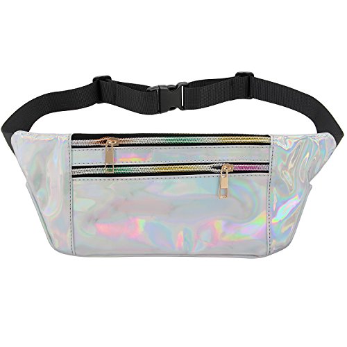 Product Description Welcome to Multifit Store, and thanks for your business and support.Spring and autumn are perfect seasons to conduct some outdoor activities.And you can not miss our Creative Reflective Fanny Pack Waist Bag, for it is really a cool bag for expressing your unique personality.Material: classic hologram PU material and rainbow shinning effect transparent material, 100% brand new, unique and stylish.Size: Length: 12inches, width: 2.8inches, depth: 7.1inches; please notice the size carefully before order, and allow 0-2cm differences due to manual measurement.There are 2 front pockets and 1 back pocket secured by zipper closure, 1 inner pocket to hold small stuffs; adjustable strap make it easier and flexible for different individuals.These fanny pack all have lining inside, which are opaque and safe.Perfect for keeping your belongings dry in the rain; Great for raves, music festivals, hiking, travelling and other outdoor activities.Hi: dear friends, if you are satisfied with our service and product, please give us the positive feedback. We would appreciate that very much. If there something is not your desired, please contact me first and let me help you solve the problem before you leave the negative feedback. The best way to contact us is through Amazon messages, we check our message regularly. If you have any question, please don't hesitate to ask me. Thank you very much! Have a nice day! 0