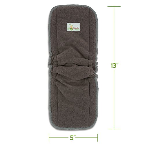FITS BABIES OF ALL SIZES – These charcoal bamboo inserts measure 13” long by 5” wide and are designed to fit all one-size pocket or cover diapers. The inserts will last from the newborn stage through toddlerhood. UNSURPASSED QUALITY – Made from breathable Bamboo viscose fiber (71.3% bamboo, 28.7% polyester) and double stitched for improved durability.