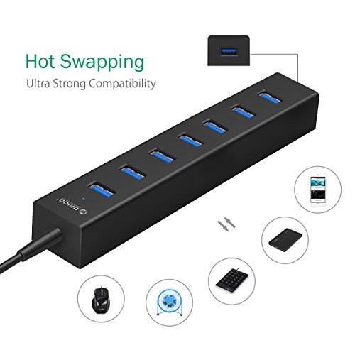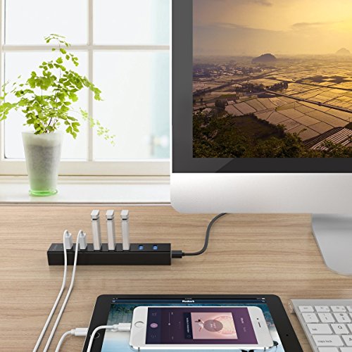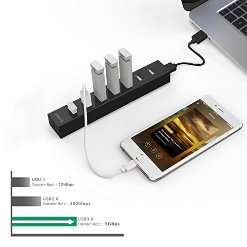 Instant Expansion Built-in with a 3rd-gen VL812 SuperSpeed USB3.0 controller which provides an easy and reliable connection with a transfer speed of up to 5 Gbps, 10 x greater than USB2.0 that allows users to add seven USB3.0 ports for your computer in seconds, setting aside less time for syncing and device switching and more time for work, also backwards compatible with USB2.0 / 1.1.