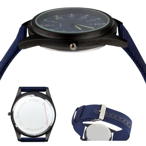 -. Title : KTC Fashion Black Case Navy Blue Dial Nylon Fabric Strap Wrist Watch ORK076
