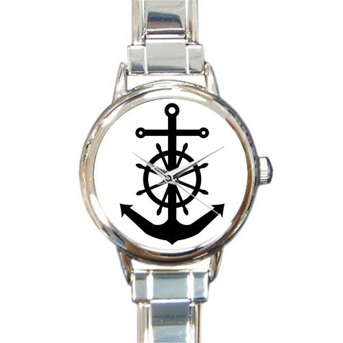 -. Title : Christmas Day Gift Nautical Black Anchor and Wheel Round Italian Charm stainless steel Watch