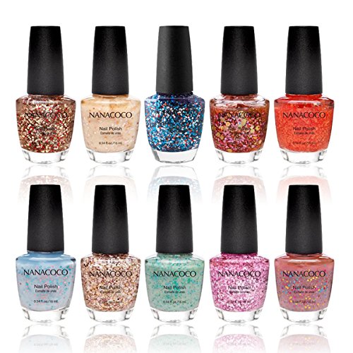 -. Binding : Health and Beauty -. Brand : Beauty Brags -. Color : Multi-colored -. EAN : 0709872665880 -. Feature : Nice collection / See Description For Colors / Will Make A Perfect Gift / Gift Ready / See Our Store For Additional Sets -. IsAdultProduct : 0 -. Label : Beauty Brags -. Manufacturer : Beauty Brags -. MPN : M2-86019 -. PackageQuantity : 10 -. PartNumber : M2-86019 -. ProductGroup : Health and Beauty -. ProductTypeName : HEALTH_PERSONAL_CARE -. Publisher : Beauty Brags -. Studio : Beauty Brags -. Title : Nanacoco Nail Polish Color Lacquer Set 10-Piece Collection #19 Its Glitter Day -. UPC : 709872665880