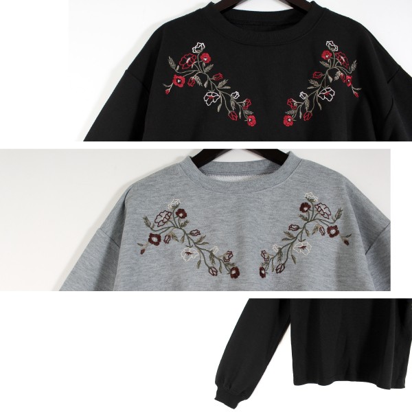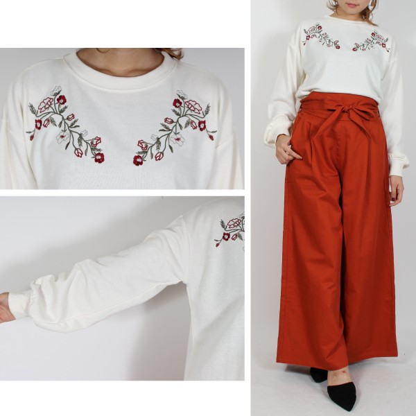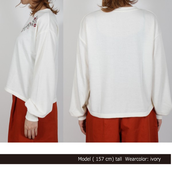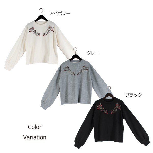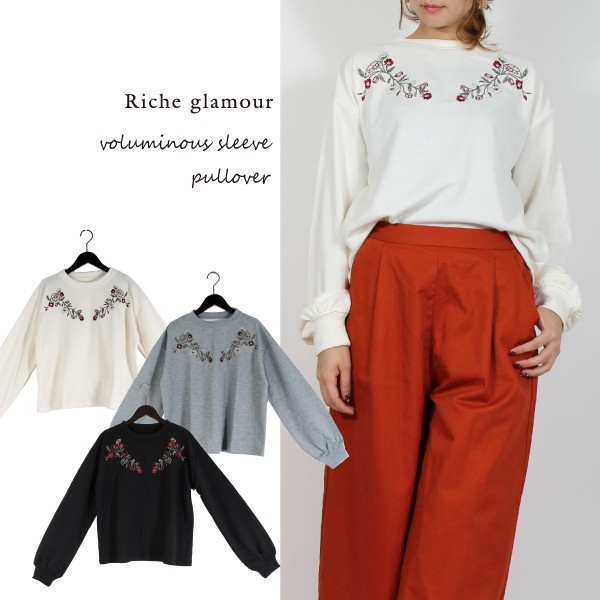 E裏毛の刺繍入り ボリュームスリーブ プルオーバー☆別布リブカラーは各色ボディマッチです◎定番人気のシルエットで!Mサイズ