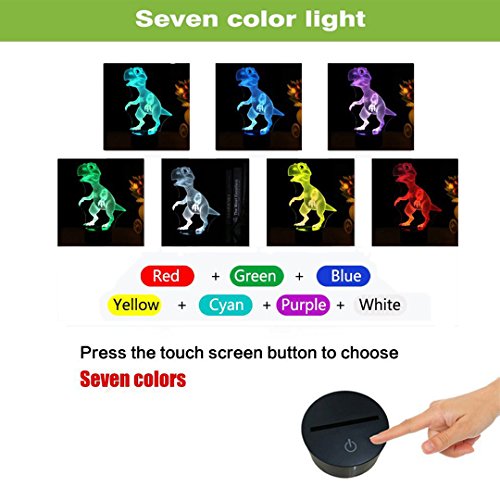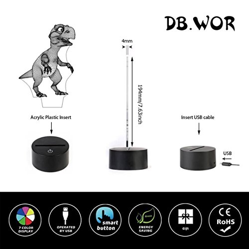 DB.WOR LED Dinosaur Night Light - Colorful LED Lamp 7 Color Change Optical Illusion Touch Table Desk Lamp Birthday Gift for Men Boyfirend Boys Kids Baby