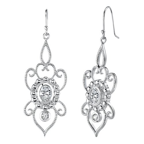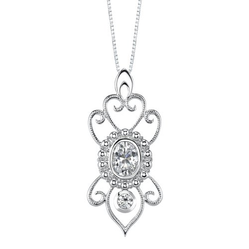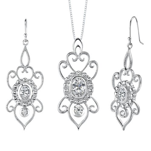 -. Title : Oval & Round Shape White Cubic Zirconia Pendant Earrings Set in Sterling Silver Rhodium Nickel Finish
