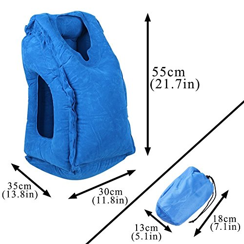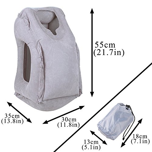 -. Feature : FULL BODY SUPPORT TRAVEL PILLOW - Newest and multi-function. It is a great inflatable indoor/outdoor pillow which provide face, head, neck and hands support while sleeping in planes, trains, buses, subways and cars. / LIGHTWEIGHT & SUITABLE SIZE - Very light, only about 10 oz. The folded size is very small. Easy to store in a backpack, suitcase, or carry on bag. / QUICK AND EASY TO INFLATE - No pump needed, inflates by mouth in about 15 seconds to a comfortable multi-functional travel pillow. / MULTIFUNCTION PILLOW - Provide versatile rest position: hold as sleeping pillow in front, support your torso in front or on the side. Enjoy your resting time by choosing your ideal sleeping position.