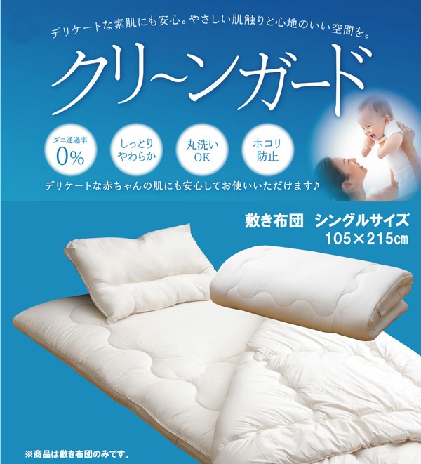 【商品名】羽毛タッチ 機能性ウォッシャブル寝具 『クリーンガード 敷き布団』 アイボリー シングル 100×210cm