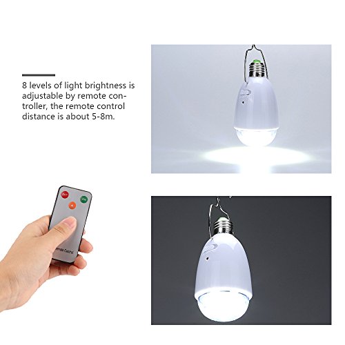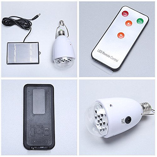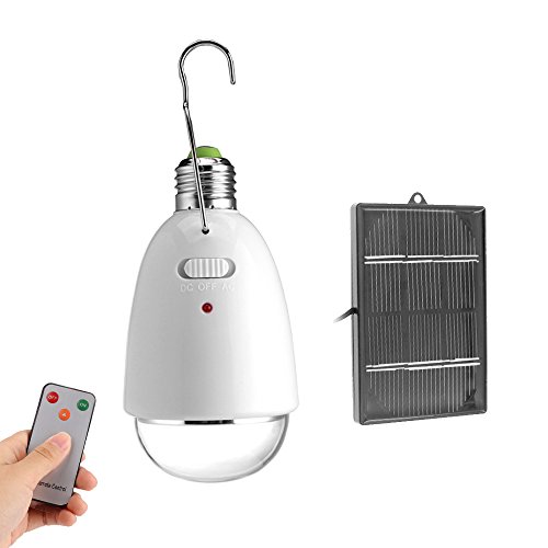 Abedoe Portable Led Solar Lamp,E27 Base AC / DC 12-LED Super Bright 8 Levels Dimmable Bulb with Remote Control and 6V Solar Panel for Outdoor Camping Tent Hiking Fishing Home Emergency Lighting