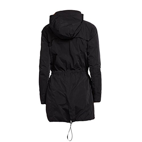 -. Binding : Apparel -. Brand : -. Color : Black -. Department : womens -. Feature : Fully lined; Mock neck; Long sleeves / Double-zip front closure; Elasticized hood / Concealed zip pocket at left chest; Two zip pockets at waist / Reflective "L-RL" screen-P.R.Inted at the left shoulder / Even-sewn hem; Hits at lower hip; 32 inch length (size S) -. ProductGroup : Apparel -. ProductTypeName : OUTERWEAR -. Title : Lauren Hooded Drawcord Jacket - Black
