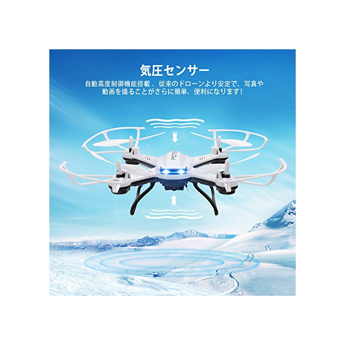 기압 센서에 의한 자동 고도 제어 기능을 탑재하고 있고, 자동《호바린구》제어가 실현 한다,초심자에게는 최적입니다.2.4GHz의 무선 제어 기술,6축 쟈이로 센서를 채용하고, 강풍에의 저항을 개선 하고, 항간섭 기능을 확보합니다.
