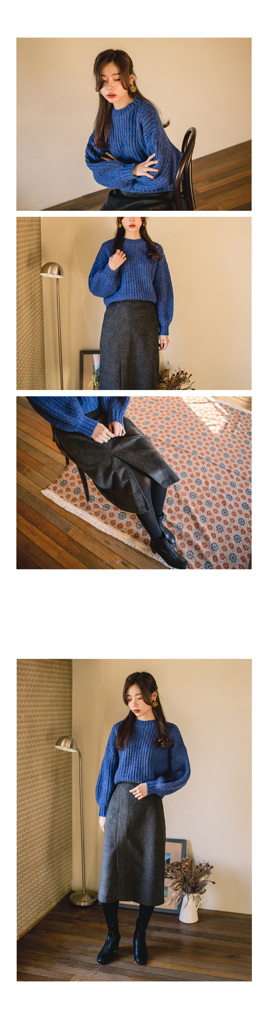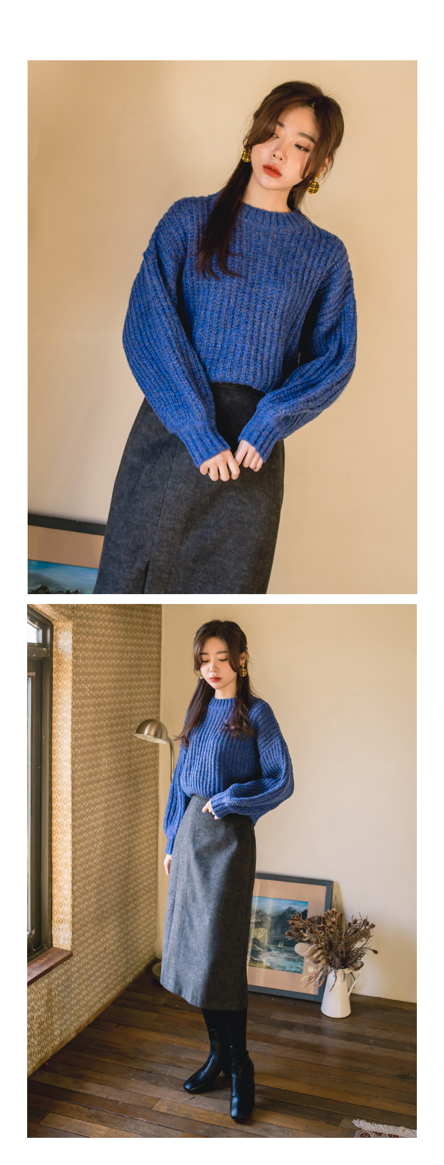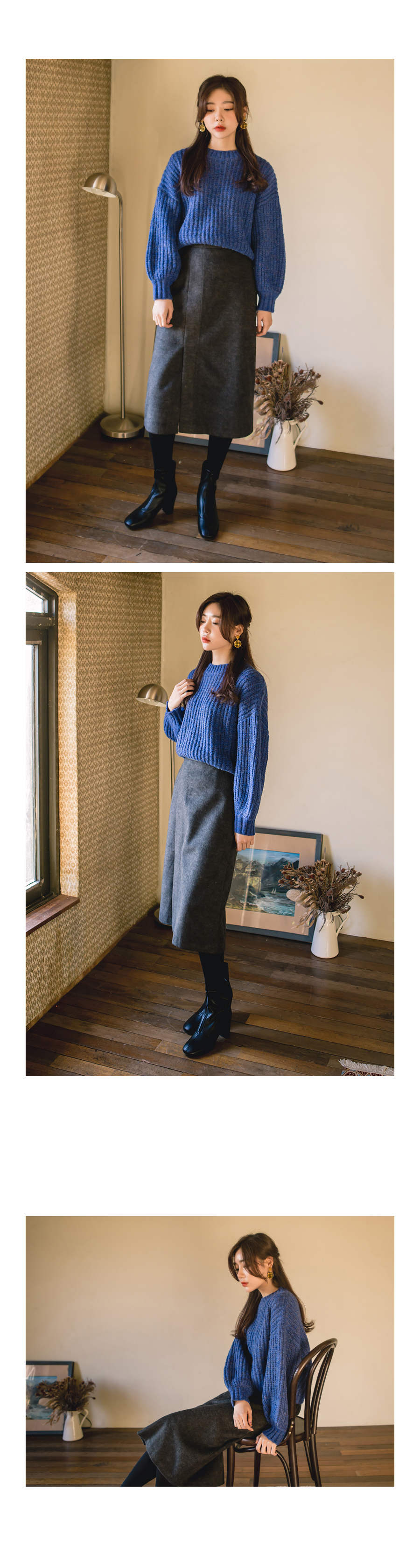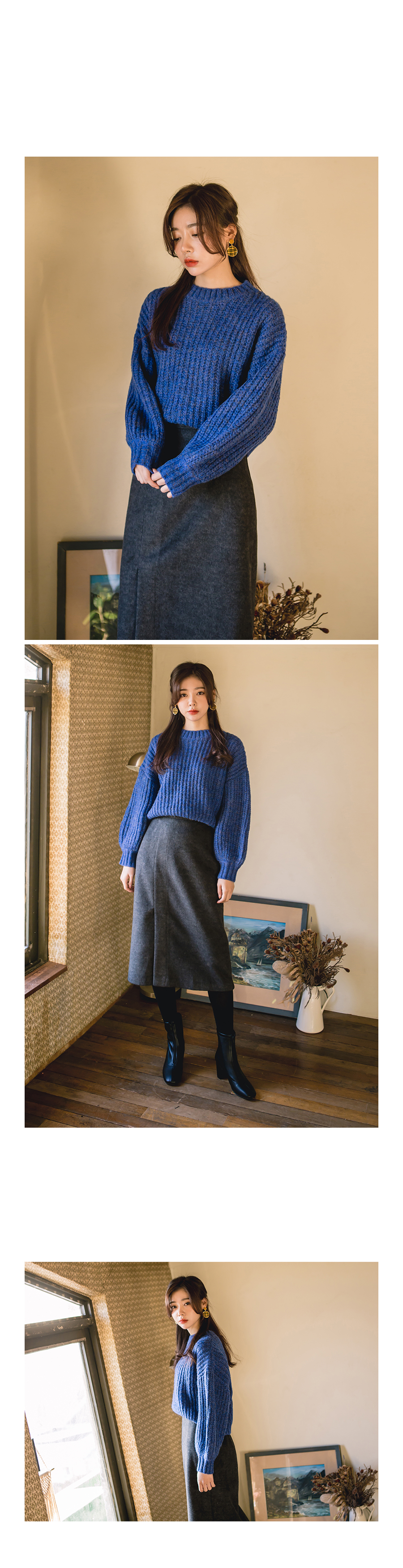 전체적으로 루즈한 핏감의 니트입니다.