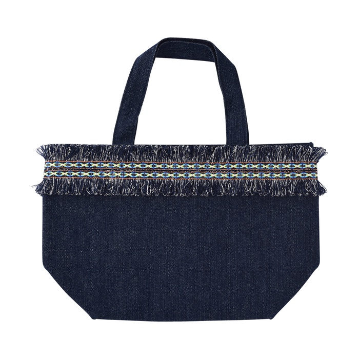 데님 원단에 라메 들어간 fringe가 액센트가 되었다