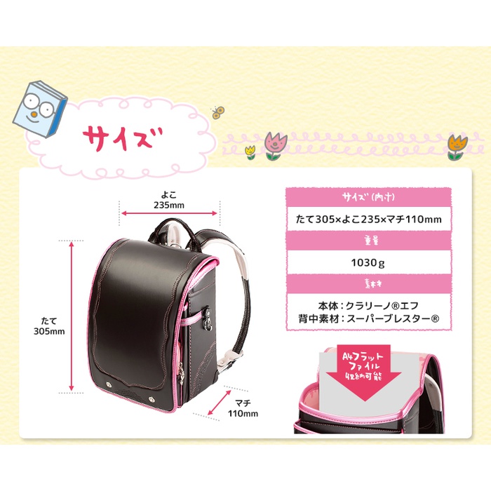 【경량1030g】◆후와리 콤팩트 클래식 란도셀(소녀용)(클라리노)경량 란도셀 최경량A4파일 타입【6년 보증】(가