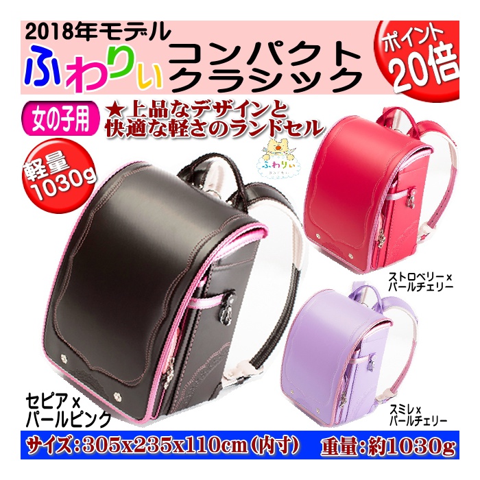 원본상품명: ?量1030g◆ふわりぃコンパクトクラシックランドセル(女の子用)(クラリ?ノ)?量ランドセル 最?量A4ファイルタイプ6年保?(?いランドセル)女?