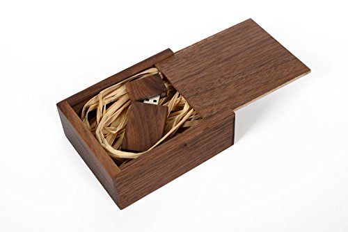 -. Title : Wooden Walnut 16GB USB Flash Drive - Inserted into a Matching Walnut Box with Raffia grass inside.