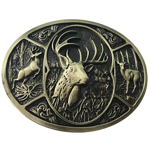 Hunter Deer Hunting Western Woods Buck Southern Antler Head Belt Buckle