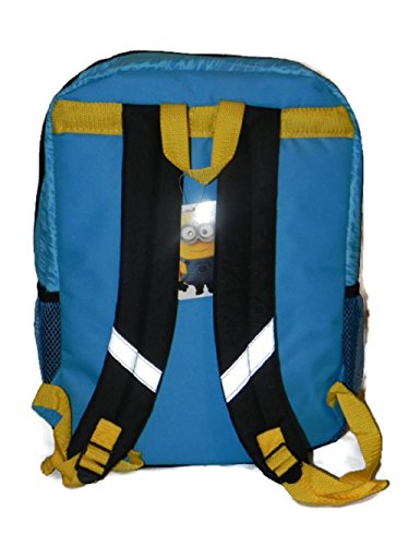 - Feature : Measures about 16"H x 12"W x 5"D / Adjustable padded straps / Mesh side pockets / Spacious zippered compartments / Cool graphic of minions