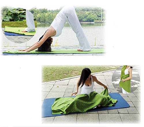 BigFox 요가 타올 요가 매트 전용 타올 촉감이 좋 흡수 속건성 발군 미끄럼방지 요가 러그 운반 편리 수납 케이스 첨부 와! (블루)