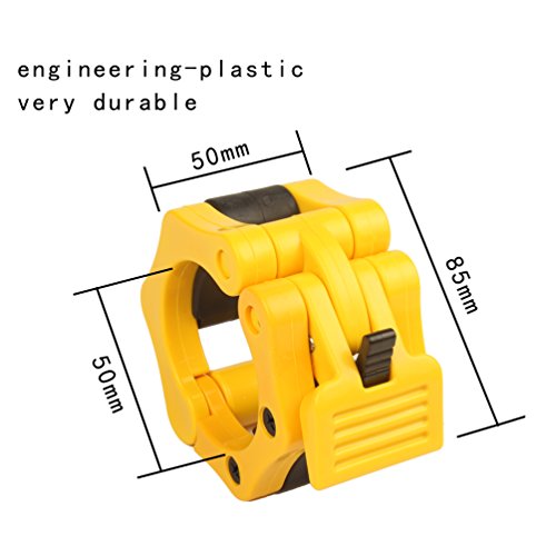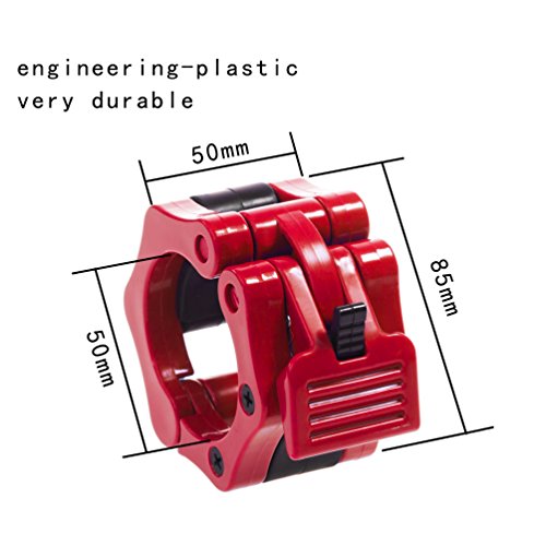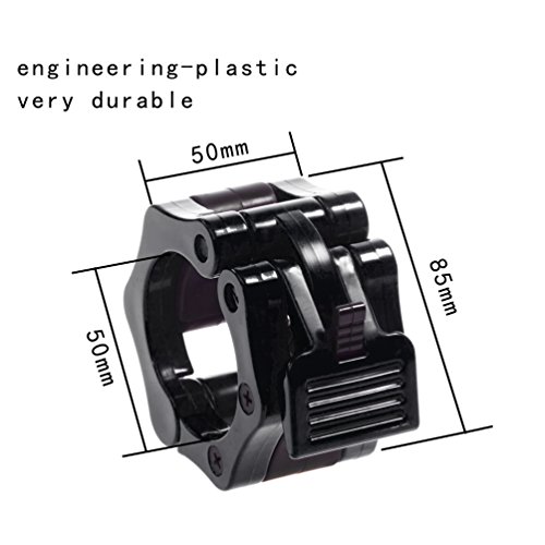Product DescriptionMaterial: ABS. Size: App 2.36"x2.36"x1.96". Inner Dia: 1.96". This barbell clamp fits for 2 inches Olympic standard size. Quick release,not easy to slide. Perfect for crossfit workouts,Olympic lifts,overhead press,deadlifts,bench press. Package: 2pcs per parcel0