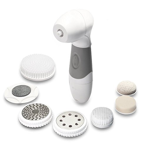 FLYMEI 7 in 1 facial, body, foot cleansing skin care system use rotating brush spinning head removes embedded dirt and oil to help keeping your skin healthier and feel fresh.