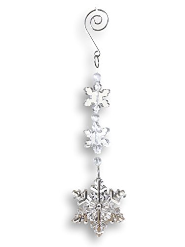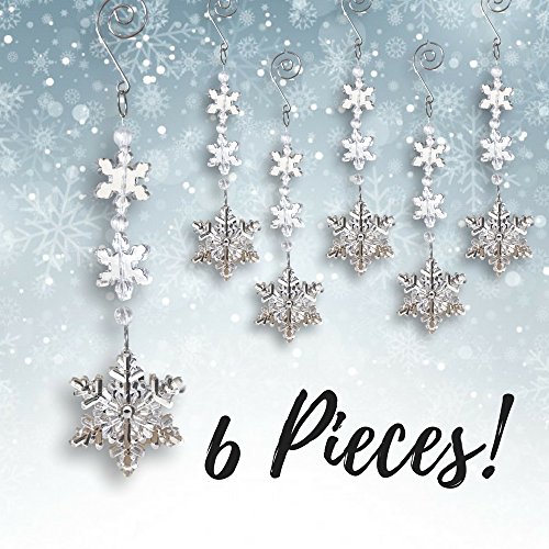 - CLEAR ACRYLIC SNOWFLAKES. Great addition to any seasonal decorations. Add them to your Christmas centerpiece or dining room chandelier for a festive holiday look. Crystal looking snowflakes hang on a wire with a decorative silver s-hook. Use these all around your home this holiday season.