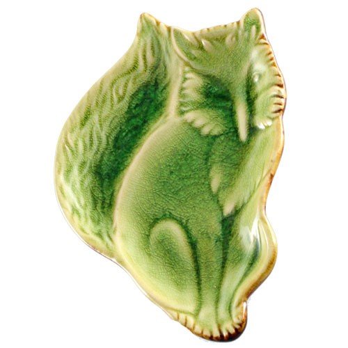 Ceramic Moss Colored Fox Tray 4.375x.875x6.25"H