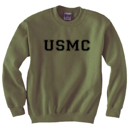 Product Description Military Style Physical Training Military Green crewneck sweatshirt. Features "USMC" on the front chest. 50/50 Poly/Cotton Sweatshirt. Set-in sleeves, 1x1 athletic rib with Lycra. 0