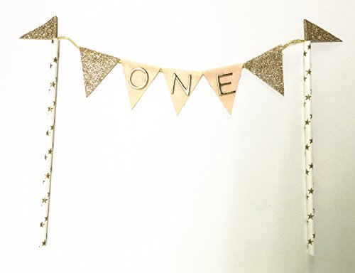 Baby First Birthday "ONE" Cake Bunting Banner Topper for Sparkle Party Birthday Cake