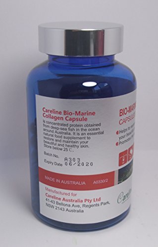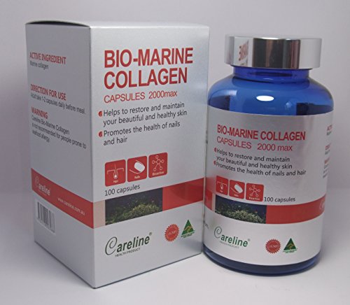 -. Binding : Health and Beauty -. Brand : Careline -. EAN : 9334518003088 -. Feature : Careline Bio-Marine Collagen Capsule is concentrated protein obtained from deep sea fish in the ocean around Australia . It is an essential natural food supplement to restore and maintain your beautiful and healthy skin / Promotes the health of nails and hairs / Helps to restore and maintain your beautiful and healthy skin -. IsAdultProduct : 0 -. Label : Careline -. Manufacturer : Careline -. PackageQuantity : 1 -. ProductGroup : Health and Beauty -. ProductTypeName : HEALTH_PERSONAL_CARE -. Publisher : Careline -. Studio : Careline -. Title : Careline Bio-marine Collagen 2000max 100 Capsules Made in Australia