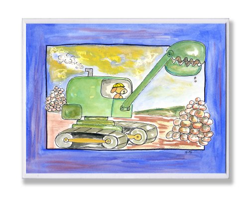 The Kids Room by Stupell Green Excavator with Blue Border Rectangle Wall Plaque