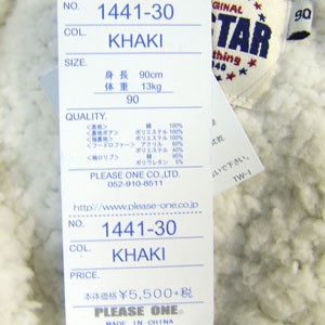 サイズ(総丈/身幅/袖丈),80(44/34/30),90(49/36/34),95(51.5/37/36),100(54/38/38),110(59/40/42),120(64/42/46),130(69/44/50)※cm
