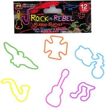 -. Binding : Toy -. Brand : Pii -. Feature : Pack of 12 Rock n Roll Rebel Music Instruments and Motorcycles Rubba Bandz Rubber Bands Bracelets -. Label : Pii -. Manufacturer : Pii -. MPN : 0716495 -. PackageQuantity : 1 -. PartNumber : 0716495 -. ProductGroup : Toy -. ProductTypeName : TOYS_AND_GAMES -. Publisher : Pii -. Studio : Pii -. Title : Pack of 12 Rock n Roll Rebel Music Instruments and Motorcycles Rubba Bandz Rubber Bands Bracelets by Pii