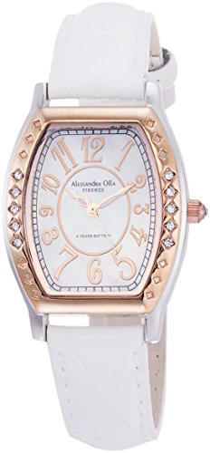 -. Title : [アレサンドラオーラ]Alessandra Olla 腕時計 トノー型 10Pクリスタルベゼル ウォッチ レザーベルト ホワイト AO-1850WH レディース