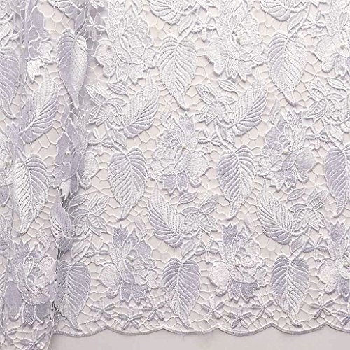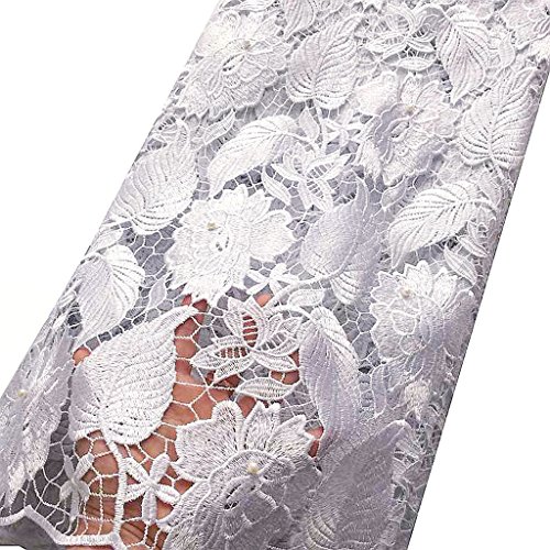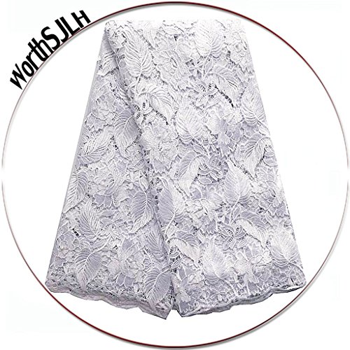 WorthSJLH 5 Yards Embroidered Beaded African Guipure Cord Lace Fabrics with Stones for Wedding LF703 (white)