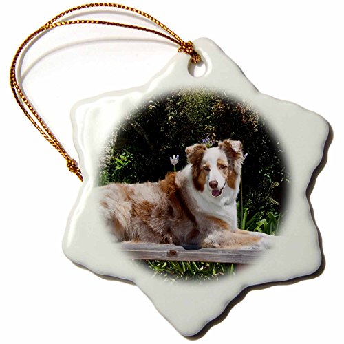 3dRose orn_88760_1 Australian Shepherd Dog US05 ZMU0027 Zandria Muench Beraldo Snowflake Porcelain Ornament, 3-Inch