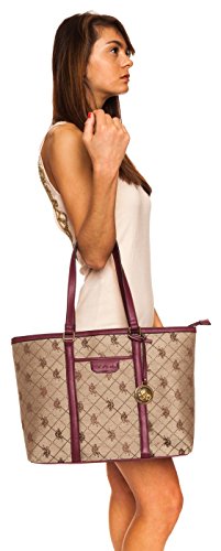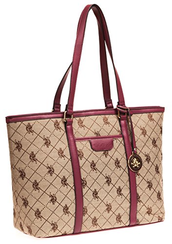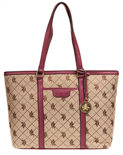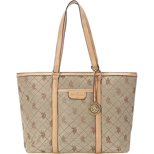 The US Polo Logo Accented Jacquard Women's Tote exhibits style and grace from every nook & corner, making it an enviable possession for all! This jacquard tote duly holds an array of items with its spacious silhouette and the flat handles on top allow carrying convenience. A subtle brand print on the exterior and a glossy medallion provides appealing aesthetics. Features: Cotton & polyester construction Two flat handles provided Two slip pockets Fully lined interior Ships immediately, 100% Satisfaction guarantee, no questions asked Return policy, and Customer Service is our top priorityFeature
