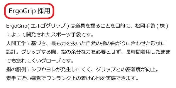 | 立体3D形状・自然な握りを実現する形状・快適さを追求した素材の3つのポイントで歩きを変える!道具を握ることを目的に開発されたエルゴグリップを採用したスポーツ手袋です。暗い道でも安心な反射材が付いています。 |
