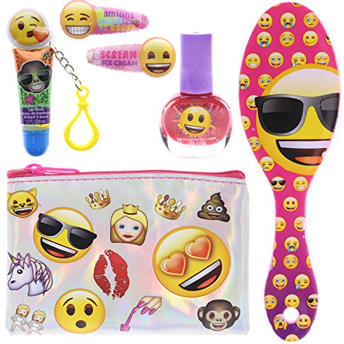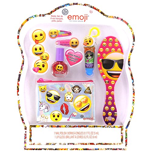 Studio : TownleyGirl Publisher : TownleyGirl Binding : Health and Beauty Product Description Throw a party or give a gift of an officially licensed Emoji cosmetic kit. Set includes: Lip gloss, nail polish, hair ties, hair brush, key chain and zippered bag. Each item in these kits is decorated with images of everyone's favorite Emojis. Non-toxic and water-based formula makes these cosmetics safe for your young ones aged six years old and older. See bullets and images for more information. 0