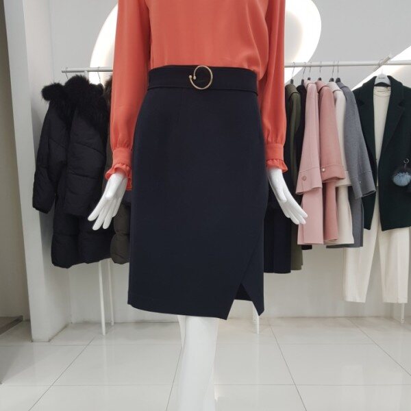 트임이포인트인H라인 스커트예요 허리벨트로 멋을강조한 디자인입니다